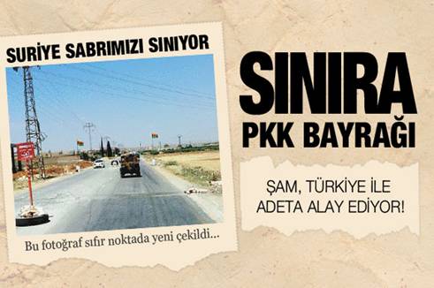 Akdeniz’in uluslar arası karasularında keşif amaçlı uçan Türk jetini sınır ihlali bahanesiyle kasıtlı düşüren Suriye, provokasyonda bir adım daha ileri giderek, Türkiye’nin güneyinde sınırın sıfır noktasına terör örgütünün PKK’nın sözde ‘Kürdistan Bayrağı’ dikmesine göz yumuyor.
