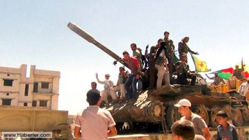 PYD’li güçler ise bugün Nusra Cephesi’nden ele geçirdiğini iddia ettiği tankları yüzlerce araç konvoyu ile Kobani (Ayn El-Arab) kentine getirdi. PYD/YPG, Türkiye sınırın sıfır noktasında bulunan Suruç’un Mürşitpınar köyünün hemen karşısındaki Kobani kentine getirdiği tankların üzerine PKK/YPG bayrakları asarak gövde gösterisi yaptı.