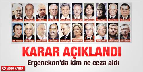 Eski Genelkurmay Başkanı emekli Orgeneral İlker Başbuğ, CHP milletvekilleri Mustafa Balbay ve Mehmet Haberal’ın da aralarında bulunduğu 66’sı tutuklu 275 sanıklı Ergenekon Davası’nda mahkeme nihai kararı açıklandı.