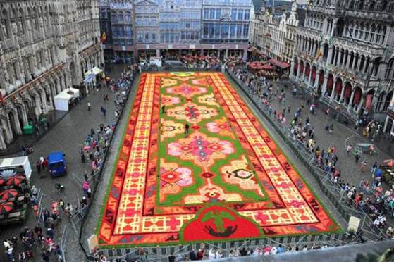 Grand Place’da ilk olarak 1971’de başlatılan ve 1986’dan itibaren her iki yılda bir düzenlenen çiçek halı etkinliği için Belçika’nın Gent kentinde yetiştirilen begonya çiçekleri kullanılıyor. Belçika, 17’nci yüzyılda Güney Amerika’da keşfedilen canlı renkli begonya çiçeklerinin en büyük üreticisi konumunda. (HÜRRİYET)