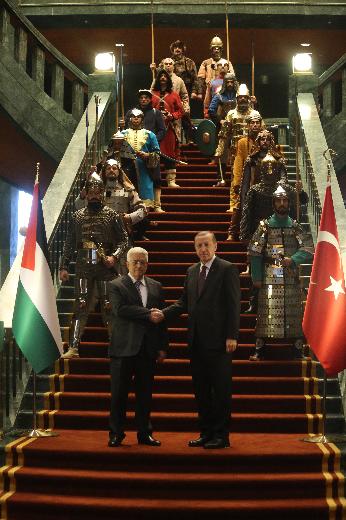 Geçtiğimiz günlerde Filistin Devlet Başkanı Mahmud Abbas’ı karşılama töreninde bir ilk yaşanmıştı. Cumhurbaşkanı Recep Tayyip Erdoğan ve Mahmud Abbas 16 Türk devletini temsil eden askerlerin bulunduğu merdivenin önünde el sıkışarak basın mensuplarına poz verdi. Bu fotoğraf Türkiye’nin gündemine damga vurmuştu.