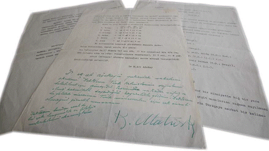 Dr. Mehmet Ali Ağakay’ın makaleleri üzerine Atatürk’ün el yazısıyla yazdığı not.