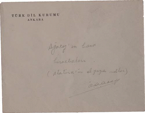 Çok yakın bir zamanda Türk Dil Kurumu Müzesi’nde sergilenecek olan bu belgeler, Dr. Mehmet Ali Ağakay’ın Ömer Asım Aksoy’a bıraktığı zarf içerisinde yer almaktadır…