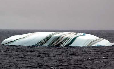 Antarktika çevresinde seyreden bir araştırma gemisi işte bu garip buzdağlarıyla karşılaştı. Mermer taşlarının çizgilerini andıran çizgileri olan buzdağları herkesi şaşırttı.