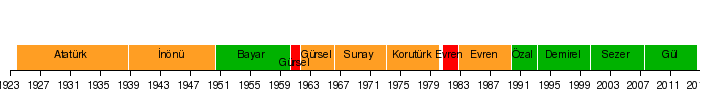 - Turuncu: Asker kökenli cumhurbaşkanları