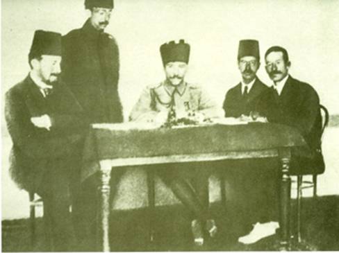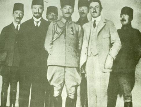 Mustafa Kemal Paşa, Erzurum’da Hükûmet Konağı önünde memur ve subaylarla