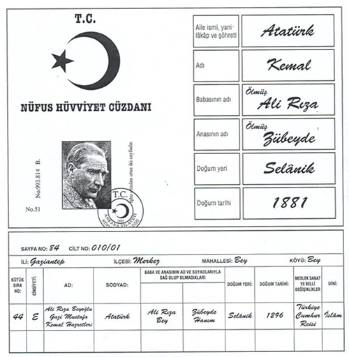 Ulu önder 26 Kânunisani (Ocak) 1933 tarihinde şehrimizi şereflendirdiler. Şehrimiz için ebedi bir saadet kaynağı olan bir tarihi günde toplanan şehir meclisi yüce Halâskâr için halkımızın taşıdığı sonsuz minnet ve şükrân duygularını ifade etmek üzere büyük Atatürk’e gazi yurdun hemşehriliğini arz etmeyi kararlaştırdı. Ve şu mazbatayı tanzim etti. Tarihi yüksek kıymetine binaen aşağıya alıyoruz. Reisicumhur gazi Mustafa Kemal Paşa Hazretleri Türkiye’nin bânisi ve en büyük milli rehberidir. İşgal edilen yurdumuzun istiklalini temin için milli bir cihat açmış ve milletin Başkumandanlığını yaparak Türkiye’yi kurtarmıştır. Bundan sonra idari, fikri, iktisadi, ilmi birçok inkîlaplar meydana getirerek yurdumuzu mütemadiyen yükseltmiş ve yalnız Türkiye’de değil bütün dünyada tarihin en büyük Kumandanı, en büyük inkîlapçısı, en büyük ilim ve fikir adamı olarak tanınmıştır. İşgal edilmiş olan Gaziantep’te bu mücadele ve inkîlaplarda büyük liderin yaktığı ışık arkasından koşmuş, vesaiti harbiyesi olmadığı halde her şeyden evvel tek başına on bir ay mücehhez Fransız ordusuyla çarpışmış, şehrin bombardıman edilmesinden, mitralyözlerle taranmasından, hücuma uğramasından yılmamış; Fransızlara harben teslim olmamış; bu suretle milli mücadelenin şanlı sahifesini yazmış ve tarihe emsali bulunmaz bir kahramanlık namı bırakmıştır. Bunun için Büyük Millet Meclisi bir Mustafa Kemal’e birde Anteb’e gazilik madalyası takmıştır. Gazi Halâskâr Gazi şehre 26 Kânunisani 1933 tarihinde ilk defa teşrif buyurmuşlardır. Gaziantep ahalisinin hissiyatına tercüman olan belediye meclisi bu çok ulvi levhanın hatırasını ebedileştirmek için şehrin fahri hemşehriliğini Cumhuriyet Halk Fıkrasının daimi, umumi reisi olan adaşına arz ve takdim etmeye ve Gaziantep Cumhuriyet halk fıkrasının bulunduğu Bey Mahallesi nüfusuna bu kaydı tescil ettirmeye karar vermiştir.