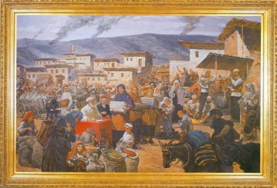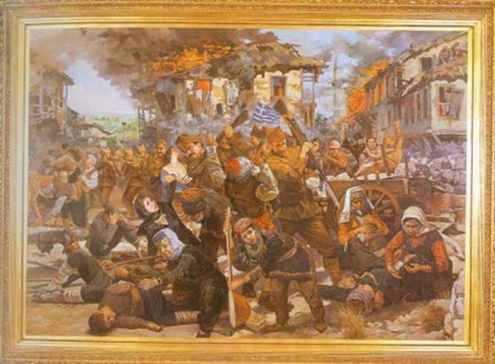 Yunan ordularının 15 Mayıs 1919’da İzmir’e çıkışı ile başlayan Anadolu’daki işgalleri sırasında birçok köy, kasaba ve şehirde masum sivil halk katledilmiştir. Bu katliamlar sırasında din adamlarının kışkırtıcı bir rol oynadığı tarihî belgelerle sabittir. Bu tabloda, bir Batı Anadolu kasabasında Yunan ordusunun sivil halka yönelik yaptıkları katliam sergilenmektedir