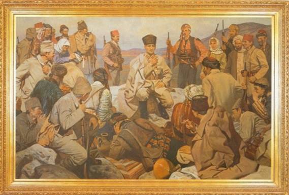 Başkomutan Gazi Mustafa Kemal Paşa, Büyük Taarruz öncesinde sık sık gezilere çıkarak halkın genel durumunu öğrenmeye ve desteğini sağlamaya çalışmıştır. Bu tabloda, Başkomutan’ın halkın çeşitli kesimlerinden kişilerle görüşmesi, Türk halkının Başkomutanın etrafında nasıl kenetlendiği canlandırılmaktadır. Mustafa Kemal Paşanın etrafında toplananların büyük bir bölümü, daha önceki savaşlara katılmış olan muharip gazilerdir