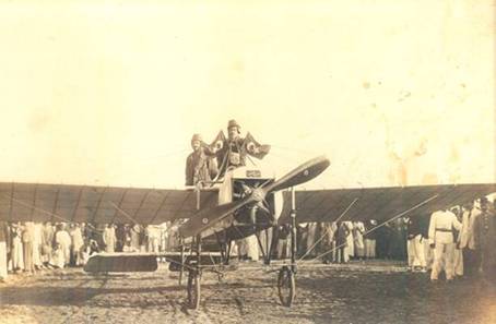 15 Mayıs 1914, Salim (İlkuçan) ve rasıdı Kemal Bey “Edremid” isimli Bleriot tayyaresi ile İskenderiye’de. (Bülent Yılmazer)