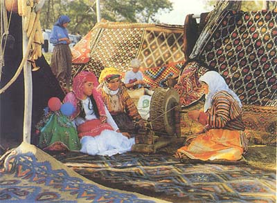 * Yörüklerin yaşamında kadının önemli bir yeri vardır. Çadırın yönetimi evin en yaşlı kadınınındır. Kadın evin direğidir. Çocuğu kadın doğurur, konuğu kadın ağırlar, kilimi, çadırı, heybeyi, kolanı kadın dokur. Keçeyi kadın pişirir. (Dokumarı genellikle küçük boyutlu, bol renkli ve motifleri özgündür) Hayvandan sütü kadın sağlar. Üzerlerine giyilen giysiyi kadın diker. Keçiden koyundan kırkılan yünü, kılı o temizler, eğirir boyar birbir renkli motife dönüştürür. Çadırda dumanı tüttürür, ekmek, aş yapar. Sözün özü, Yörük kadını beş parmağında beş hüner, üretkenliğin, sevginin vefanın eşsiz bir örneğidir.