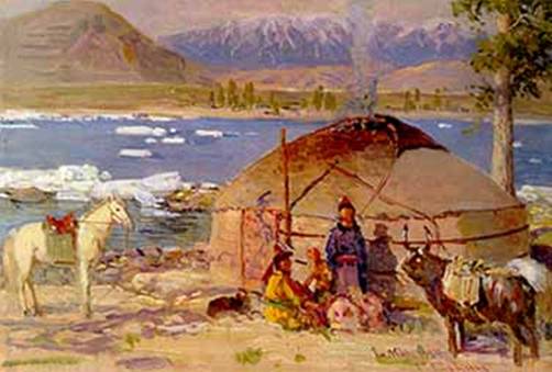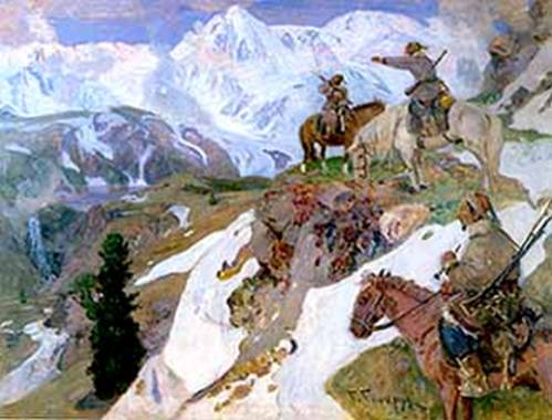 Gurkin 1936’da yani 29 yıl sonra Han Altay’ı tekrar yapmıştır. 1907’de yapılan tabloda bazı değişiklikler vardır. Tabloda yapılan bu değişiklikler ise gerçek hayatta nesilleri tüketilen Türklerin dramının yansımasıdır aslında. 1936’da yaptığı tabloda Altaylar’da kanatları açmış olan kartal yoktur artık. Çam ağacı iyice cılız bir haldedir ve küçük fidanlarda yok olmuştur. Bunlarla birlikte Çamın hemen yanı başında bir başka çam daha büyümüştür (Ruslar)1937’de öldürülmüştür. Suçu doğal olarak “Pantürkist” olmaktır. Resimleri de “Pantürkist sanat eserleridir”