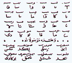 Arap “elifba”sından önce Uygurların, daha sonra Moğolların kullandığı, bir İran kavmi olan Soğut’lardan alınan “abece”nin de bir sırası vardı. Onları da elimizdeki Uygur abecesi cetvellerinden “a-ba-ka, va-sa-ka, ya-ka,da, ma-na-za, pa-ça-ra, şa-da-la ve şa-ma-ka” şeklinde üçer harflik sıralanmalarla görüyoruz. [3]