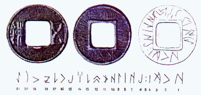 [12] Sergey G. Klyaştornıy, “Moneta s runiçeskoy nadpisyu iz mongolii”, Tyurkologiçeskiy Sbomik 1972, Moskova, 1973, 334-338.