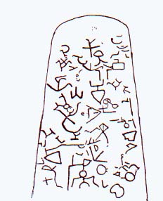 Bu çok enteresan; Altın Köl yazıtının bulunduğu tepede bulunan bir harita. Zannediyoruz ki, bu harita -ben onu yerinde gördüm- bir okla aşağıyı gösteriyor, çünkü ovada olan savaşı gösteriyor. Orada Altın Köl yazıtları, yani Yenisey 28 ve 29 numaralı yazıtlar dikilmiş. Bu, eski Türklerin yapmış olduğu en büyük harita, çünkü ovanın haritası. Rus meslektaşlarım aradaki yerlerin, nehirlerin, belki o an, savaş başlamadan bir kurban kesilerek kurban kanıyla dolduğunu söylüyorlar; ama bu bir tahmin. Yani, eski Türklerin bir haritası da var; hala orada Tuva’da yerinde duruyor.