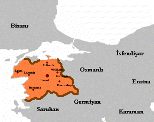 Anadolu Selçukluları’nın inhilâli esnasında bu aileden olarak uç beyliğinde bulunmuş olan Kalem Bey ile oğlu Karesi Bey diğer Uc beyleri gibi Bizanslıların zararına olarak Batı Anadolu’yu istilâya başlamışlar ve takriben 1302’den sonra Bergama ve Balıkesir’i alarak Balıkesir’i yeni kurulan Beyliğine merkez yapmışlardır; İbn-i Batuta, şehrin Karesi Bey tarafından tesis edildiğini yazmaktadır.
