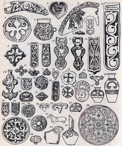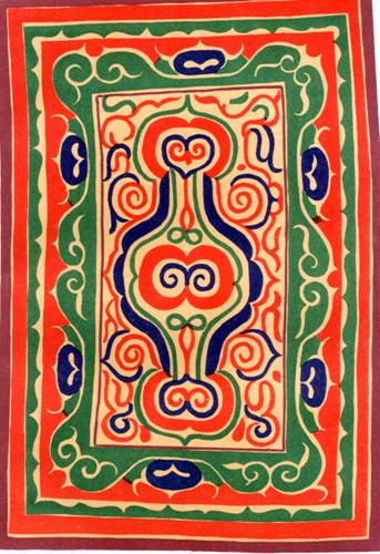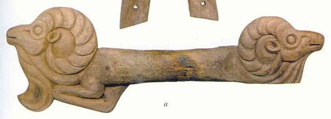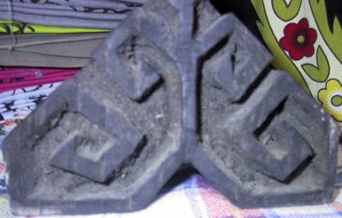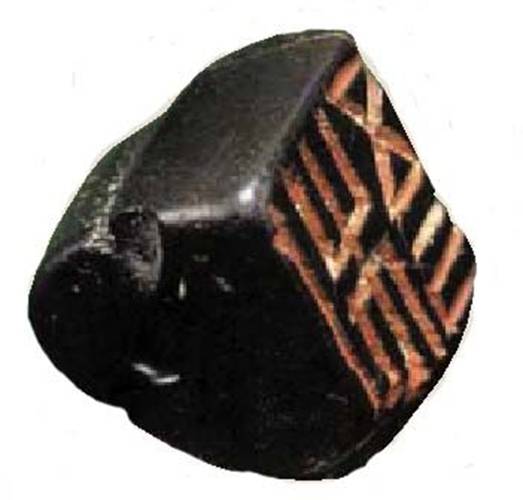 Türkmenistan’da milattan öncesine ait dokumalar üzerine baskı yapmak için kullanılan bir eser. Bunun benzerleri hala Tokat yöresinde kullanılmaktadır.