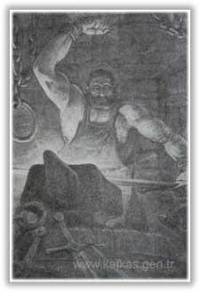 Demirci karakteri Nart destanlarında mitolojik bir kahraman olarak tasvir edilir. O çıplak elleriyle kızgın demiri dövebilir, ona istediği şekli verebilir. Kuşların ve bütün hayvanların dillerini bilir ve onlarla konuşabilir. Nart kahramanları için demirden kılıçları, kalkanları ve zırhları ilk defa o yapmıştır. İlk at nalını o icat etmiştir, böylece Nart savaşçıları atları ile uzak ülkeleri fethe gidebilmişlerdir.