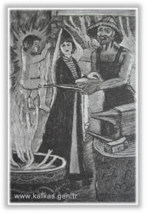 Oset Nart destanlarında bu motif şöyle yer alır: