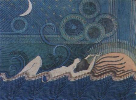 Efsanevi bir kuş bakirenin dizini görür, yuvasını oraya yapar, yumurtalarını bırakır. Yumurta kırılır, denize dökülür ve parçalarından gökyüzü, güneş, ay ve bulutlar meydana gelir. İlmatar da sonraları, yeryüzünü yaratır. Ölümsüz Ozan Vainamöinen, İlmatar’dan dünyaya gelmiştir.