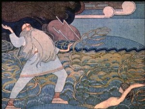 Sampo’yu almak için yola çıkarlar. Açık denizde, kayıkları kocaman bir turna balığının sırtına oturur. Balığı öldürüp kayığa alırlar.