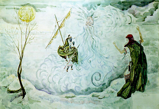 Bu karışıklık içinde Vainamöinen sazını kayıktan denize düşürür ve bulamaz.