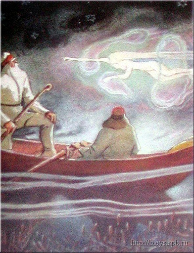 Vainamöinen Pohjola’dan evine dönmekteyken, yolda Louhi’nin güzel kızına rastlar ve ona evlenme teklif eder. Kız bazı şartlarla kabul eder: Ozan kirman kırıklarından (Yün, kıl, pamuk iplikleri eğirmede ve bükmede kullanılan bir araçtır. Halı yapımında da kullanılır. “Kirman kırığı” bu işlemlerden geriye kalan artıklardır.) bir kayık yapacak ve bunu el değdirmeden yüzdürecektir.