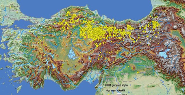 Hastalık virüsünü taşıyan Hyalomma türü kenelerin uygun yaşam alanlarına paralel olarak riskin arttığı bölgelerden söz etmenin mümkün olduğunu kaydeden Sağlık Bakanlığı, hazırladığı risk haritası ile, 2002 yılından bu tarafa Türkiye’de tespit edilen KKKA insan vakalarının sürekli ikamet adreslerini koordinatlarına göre işaretledi.