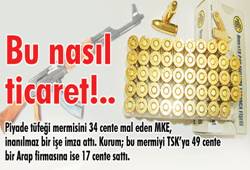 Piyade tüfeği mermisini 34 cente mal eden MKE, inanılmaz bir işe imza attı. Kurum; bu mermiyi TSK’ya 49 cente, bir Arap firmasına ise 17 cente sattı. Yüzde 100 zarar edilen bu ticaretin sırrı henüz çözülemedi!