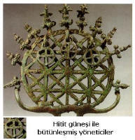 İlk şekilde Hitit kültüründeki Tengri damgasını sundum. İlk anda çarpıcı ve şaşırtıcı gibi görünen bu yaklaşım ilginizi çekip ilerdeki açılımları beklemenizi sağlamak içindi. Şimdi artık 7. yazıda bu açılımlara girebiliriz. Hitit güneşinin kendisi Tengri simgesi olduğu gibi, 3 adet küçük boy Tengri damgası da Hitit kralını, kraliçesini ve baş rahibi simgeliyorlar. Onların da kutsal özelliklere sahip olduklarını belirtiyorlar.