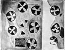 Sağ alt köşedeki pişmiş topraktan yapılmış çömlek üzerindeki şekiller de aynı kavramı simgeliyorlar. Spiraller güneşi veya yıldızları, artı işareti ise kollarını iki yana açmış insanı simgeliyor. Böylece güneşe tapan veya gökteki yıldızlara bakan insan kavramı ortaya çıkmış oluyor. Bu çömlek yukarı Nil (bugünkü Sudan) bölgesinde bulunmuştur.