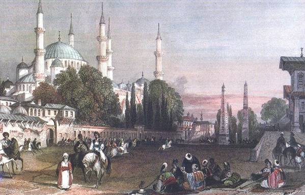 Eski bir gravürde eski adı At Meydanı olan Sultanahmet Meydanı