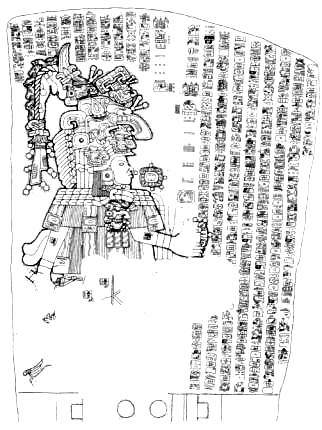 La Mojarra dikilitaşının bir çizimi. Metinde tarih dahil, 400 ile 500 karakter vardır.
