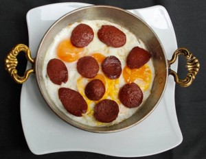 Afyon’a sabaha karşı girdik. Gözlerimiz sadece şekerleme ve sucuk reklamlarına takılıyor. Dükkanlar ışıl ışıl. Bir reklam panosu dikkatimizi çekti: ‘sahanda sucuklu yumurta’.. Adresi de belli. Yolumuz üzerinde büyük bir tesis. Sessizce ikimizde kararı vermiştik. “İşte yemeğim bu”