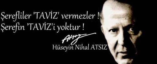» Tavizin hiç bir güçlüğü çözmediğinin son örneği Kıbrıs meselesidir. Yunanistan gibi küçük ve aciz bir devlet bile tavizlere kanmamıştır. Çünkü düşmana taviz verilmez. Düşmana verilen taviz onun cüretini ve iştahını artırır.