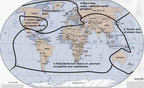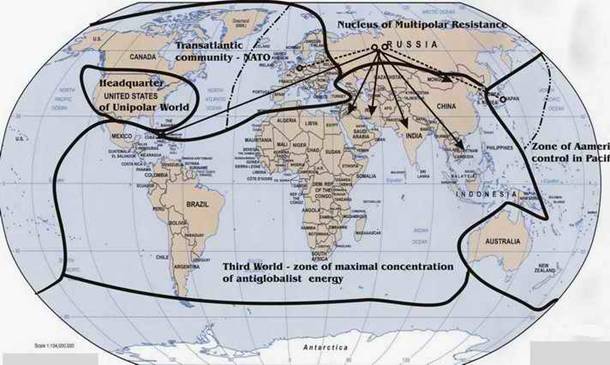 Yeni Avrasyacılık, günümüzdeki durumu küresel boyutta idrak etmeyi önermektedir: Biz, tek kutuplu bir dünyanın, yani doğrudan Amerikan kontrolünde ve Anglo-Sakson siyasi, iktisadi ve dini değerlerin hakimiyetindeki küresel Atlantikçi imparatorluğun kuruluşu eşiğinde bulunmaktayız. Jeopolitik açıdan sözkonusu olan, denizin küresel zaferi ve karanın mağlubiyetidir. Demek ki, yeni dünya düzeninin kurbanları sadece karasal devletlerin siyasi-stratejik menfaatleri değil, tekdünyacı (mondialist) ikameci-kültürün Procrustes1 yatağına sığmayan tüm geleneksel değerler ve normlar sistemi olacaktır. Bugün kimse münferit mücadelede galebe çalmaya kabil değildir: halklar ve inançlar kendi aralarında hangisinin değerleri daha iyidir diye iddialarda bulundukları sürece, globalleşmenin küresel silindiri halkların, ırkların, dinlerin ve kültürlerin tüm farklılıklarını ve özelliklerini “tek bir insanlık” asfaltında ezecektir. Bu süreçte de, gerek ABD ile gönüllü işbirliğine gidenler, gerekse müstakbel küresel diktatörlüğe karşı çıkmaya cesaret edenler eşit düzeyde zarar görecek. Kendi kimliğimizi savunmak için bizler, çok az bir süre önce rakiplerimiz ve hatta hasımlarımız olanlarla dahi ciddi jeopolitik bir ittifaka girmek zorundayız.