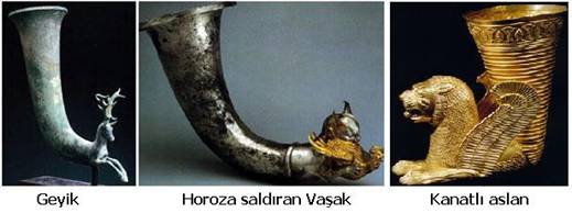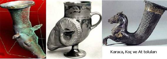 Yazının henüz pek az kullanıldığı dönemlerde verilen sözün büyük önemi vardı. Bu bakımdan and-içme törenlerinde kullanılan kadeh (tolu) özel olarak yapılır ve Türk toplumlarının çeşitli kutsal hayvanları bu kadehte şekillenirdi. Alttaki resimlerde çeşitli Türk toplumlarının, günümüzde müzelere konmuş olan, and tolularını görüyoruz. Bu kadehlerin boynuz gibi eğri olduklarına dikkatinizi çekerim. Her birinde İslâmiyetten önceki Türk toplumlarında kutsal sayılmış olan geyik, at, vaşak, dağ keçisi ve aslan gibi hayvanlar tolu ile estetik bir şekilde bütünleşmişlerdir. Bu kadehlerin yapımında önceleri içi boş dağ keçisi boynuzu kullanılırken, zamanla altın veya gümüş, bazen de bakır madenleri kullanılmıştır.