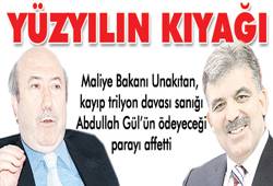 Kayıp trilyon davası sanıklarından Cumhurbaşkanı Abdullah Gül, aynı davada suçlu bulunan Erbakan’ı affetmişti. Benzer bir af da bu kez Maliye Bakanı Unakıtan’dan Gül’e geldi.