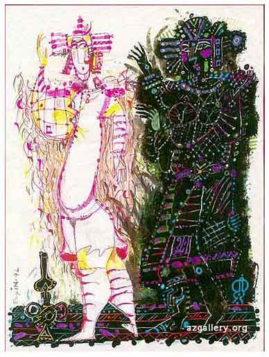 (İyi ve Kötü. Elçin Mamedov Grafik çalışma. Azerbaycan, 1985)