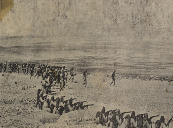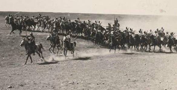 Türk askerleri siperden İngilizlere karşı taarruz ederken