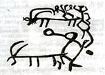 Van’ın Baş et dağındaki bu kaya resminde, damga iki dağ keçisi, adamlara benzeyen ve onları anlam olarak birbirlerine bağlayan şekiller görülmektedir ki, bu şekillerin her biri birer kavramı ifade eden damgalar’dır.Tarih 13binlerdir.