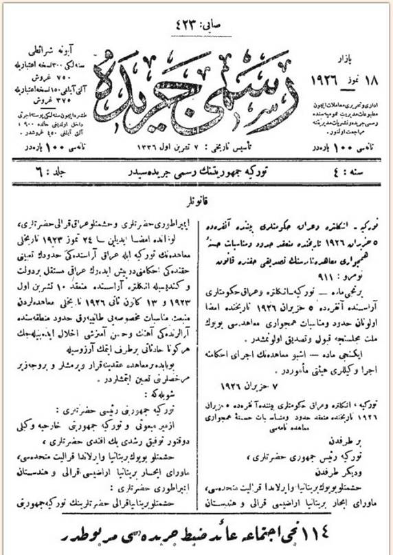 Yani Türkiye’nin müdahale için hukuki hakkı Ankara’ya sağlayan 1926 yılında yapılan Ankara Antlaşması.