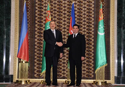 Aliyev de kardeş ülke Türkmenistan ile kurulacak demiryolu hattıyla Orta Asya’nın Azerbaycan, Gürcistan ve Türkiye üzerinden Avrupa’ya bağlanacağını belirtti.Türkmenistan Devlet Başkanı Berdimuhamedov’un göreve gelmesiyle iki ülke arasındaki ilişkiler hız kazanmış, 1 Kasım 2008 tarihi itibariyle iki ülke arasında 36 anlaşma imzalanmıştı. İki kardeş ülke arasındaki dış ticaret hacmi de giderek artıyor. 2007 yılında ticaret hacmi 98,1 milyon dolar iken, 2008 yılının ilk dokuz ayında bu rakamın 489 milyon doları bulduğu kaydedildi. Böylece, Azerbaycan Türkmenistan’ın dış ticaretinde 6. sıraya yerleşti.
