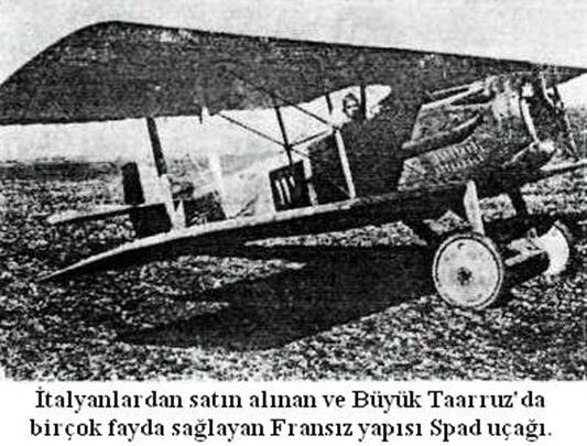 Bu şartlar altında girilen Büyük Taarruz’dan sonra ele geçirilen her kentte, düşmana ait çeşitli tiplerde tayyareler, Türk hava gücüne katıldı. Özellikle İtalyanlardan satın alınan ve düşmandan ele geçirilen Spad av uçakları, 1922 başından itibaren büyük yarar sağladı. Büyük Taarruz’da avcı görevi yapan Spadlar, o günlerde Yunanistan’da çıkan iç karışıklıkları yazan Rizos patris, Elefteros Tipos ve Patris gazetelerini ve Türk ordusu tarafından esir alınmış Yunan askerlerinin teslim ol çağrılarını içeren bildirileri, cephe gerisine atarak Yunan ordusunun dağılmasını sağladılar.