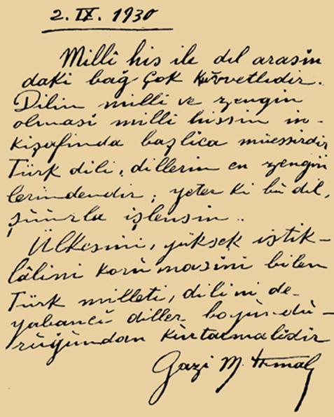 İşte şimdi Türkiye’de Türkçemizde bu fikir doğrultusunda yozlaştırılmaktadır. İşin en acısı da artık sade vatandaş bile konuşmalarında bu kelimeleri kullanamıyorsa kendisini cahil sanıyor. Genel Kültürden yoksun sanıyor ve var gücüyle bu yanlışları öğrenmeye başlıyor. Tüm dizilerimizde ve programlarımızda bu kelimeler kullanılınca ne yapsın o arı duru Türkçe konuşan vatandaş. Karşısında örnek alacağı insanların dilini anlamıyor ki. Yani bu yabancı kelimeleri kullananlar Aydın ve Kültürlü, kullanamayanlar ise cahil ve geri kalmış olarak kabul ettirilmeye çalışılan özünü inkâr edenlerin çoğunlukta olduğu bir toplumda yaşıyoruz maalesef.