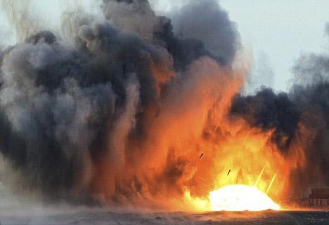 Kalanlarını da misket bombaları altında, yeni silahlar için denek olalarak kullanıyorlar.