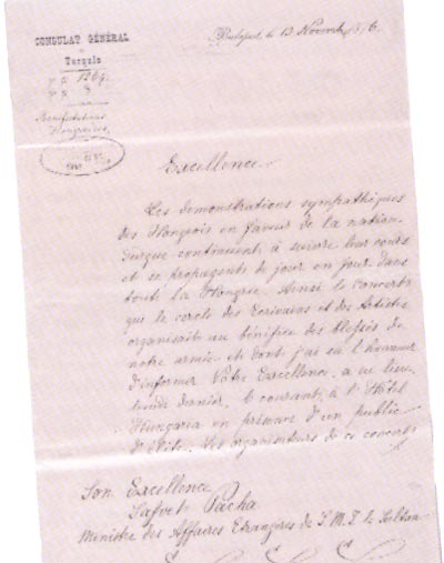 Osmanlı Rus savaşı’nın başlaması üzerine Macaristan’ın Peşte ve birçok şehrinde Macar halkı Osmanlıya yardım göndermek yardım organizasyonları tertip ederek, gençler Osmanlının yanında savaşmak için elçiliğe müracaat etmişler.
