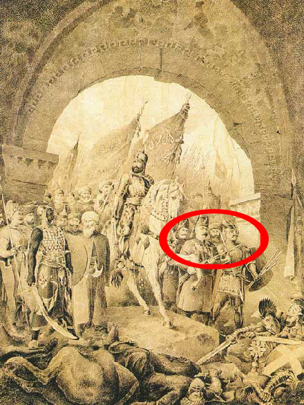 Ne var ki bu tablo bir röprodüksiyondur. Eserin aslı Hasan Rıza isimli bir Türk ressama aittir. Hasan Rıza’nın eseriyle Zonaro’nun eseri o kadar aynı o kadar aynıdır ki sağdaki zenci askerden Fatih’in duruş şekline, yerdeki cesetlerden duvar perspektifine kadar her şey “hüvesi hüvesine” aynıdır. Farklı olan tek şey vardır iki eser arasında: Fatih’in sol yanındaki yeniçeri.