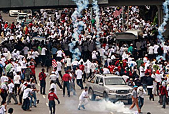 Başkent Kuala Lumpur’da matematik ve fen derslerinin İngilizce okutulmasına isyan eden yüzlerce öğrenci ve öğretmen, Kral’a dilekçe vermek için yürüyünce adeta savaş çıktı. Polis, saraya ileryen kalabalığı göz yaşartıcı gaz kullanarak dağıttı.