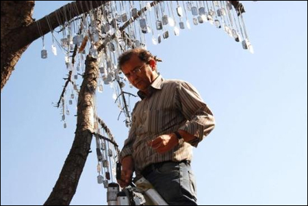 Heykeltıraş Özer, 1980′den beri terörle mücadelede şehit olan Mehmetçiklerin künyelerine yer verdiği ağaç anıtı, Kızılcahamam’da yaptı.